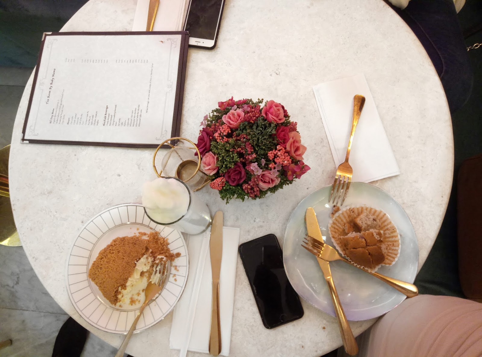 Tulip bistro design is super cute and has different sections, but the section where we sat down which has the flowery design looks bigger on Instagram but in reality, it is a small room. The design is cute, snacks are ok taste-wise, to me nothing so special just cakes, drinks, tea and coffee. Well, I think that was the aim to get something sweet and fast.